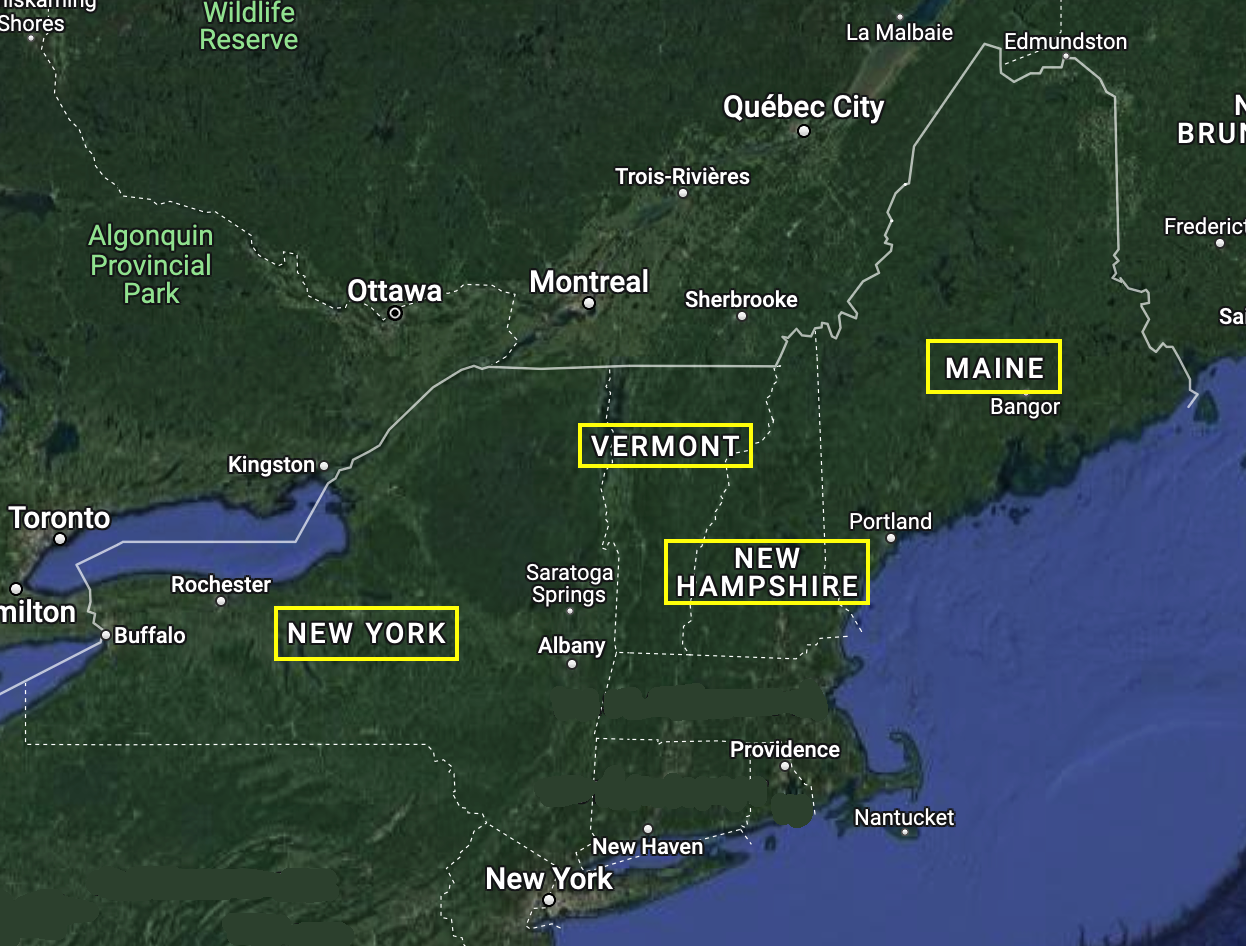 You see, here is a map of New York, Vermont, New Hampshire, and Maine.
