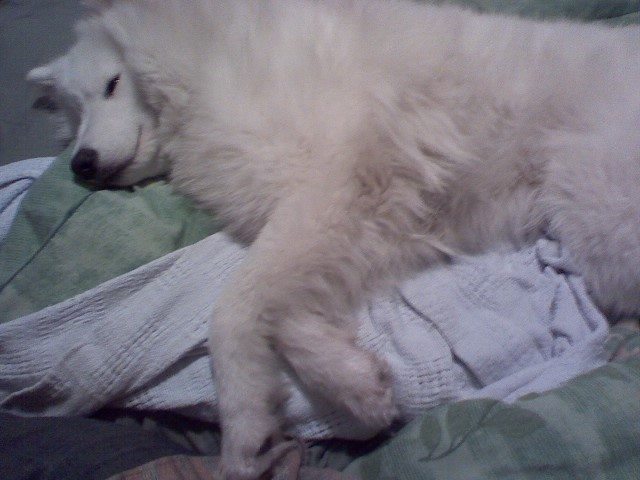 My favorite joke about Freya is that she loved to lay in front of drafty doors, and with her thick white fur, she effectively sealed the leaky enclosure, and so I thought maybe I could get her registered as a weatherization service dog and bring her into businesses with me and stop heat loss and improve energy performance of the structure, by being awesome.